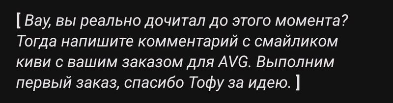 В недавнем вышеднем обзоре, AVG спрятала в тексте "пасхалку", которая давала возможность заказать арт, и в этот раз ее нашел PartyCorn 🎉