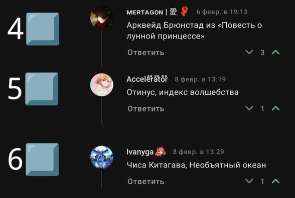 📚В чем суть? Я взял несколько комментарий из под рандомного аниме, но ± популярного. Ваше задача угадать по этим комментариям название тайтла, под которым они были написаны.