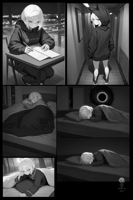 Не утруждая себя сменой одежды, Софи натянула чёрную толстовку, такие же шорты, обула кроссовки и вышла на улицу. Воздух был свеж, лекарства начинали действовать, а её шаги становились увереннее. Однако, приблизившись к кофейне «Сияние Луны», девушка заметила странность — посетителей почти не было. Обычно в это время здесь кипела жизнь, но сегодня прохожие словно не замечали уютного заведения.Софи пожала плечами — не её проблема. Главное, что внутри ждёт кофе и беседа с подругами.Но стоило ей открыть дверь, как она на мгновение застыла. За одним из столиков сидели Брут и Римуру, а рядом с ними... Эцу и Рика, но в мужском обличье?!Что за чёрт?Забыв обо всём, Софи сделала несколько шагов вперёд, пытаясь осознать происходящее. Но её мысли прервал вид идеальной кружки кофе на столе. Аромат был божественным, а жажда — невыносимой.Не раздумывая, девушка схватила напиток и осушила его в один глоток.Наступила тишина.Четыре пары глаз в ужасе наблюдали за ней, а затем четыре ладони синхронно хлопнули по лбам.Но Софи уже не видела этого. Последнее, что она почувствовала, — резкая слабость в теле, а затем столешница стремительно приближающаяся к её лицу.Глухой удар. Тьма.— Ну вот, началось... — вздохнул кто-то из компании.#заметки_на_полях#Сияние_Луны#Brute#mertagonia#Vremya | #римуру#STYT#CreatorAA#ОМПА