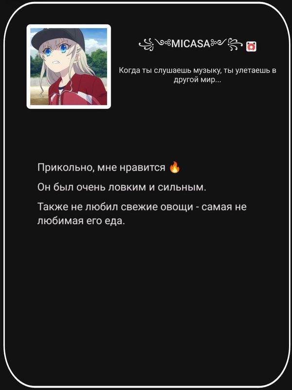 🐥 Привет! ᅠ ᅠ ᅠ ᅠ ᅠ ᅠᅠᅠ ᅠ ᅠ ᅠ ᅠ ᅠᅠᅠЗагляни в описание канала [тык] ᅠ 🏝 Канал на свободную тематику в рамках правил и ограничений проекта Anixart. Страдаем всякой фигнёй от бреда до полезного контента. Рассмотрим ваши предложенные записи. ᅠ 🐔 Владелец: https://anixart.tv/profile/... 🐣 Сансик: https://anixart-app.com/pro... 🐓 Какой-то старик: https://anixart-app.com/pro... ᅠ 🎙 Рекомендую CelestialDub https://anixart-app.com/col... ᅠ 🏛 Немного о прошлом канала: ᅠ 🌆 «Mertagonia» — это вымышленный мир, существующий на проекте «Anixart». Он представляет собой хаос-канал, где могут происходить самые разные события, от дней предложки и шуток до организации самобытного государства. Каждый желающий может стать не только участником этого мира, но иногда и его временным правителем. ᅠ MERTASTATE в наших сердцах 💖 ᅠ ✨ В Мертагонии запрещено два слова: "тихо" и "спокойно". Официальный девиз Мертагонии: «Просто прими это и продолжай жить». © STYT 🛖