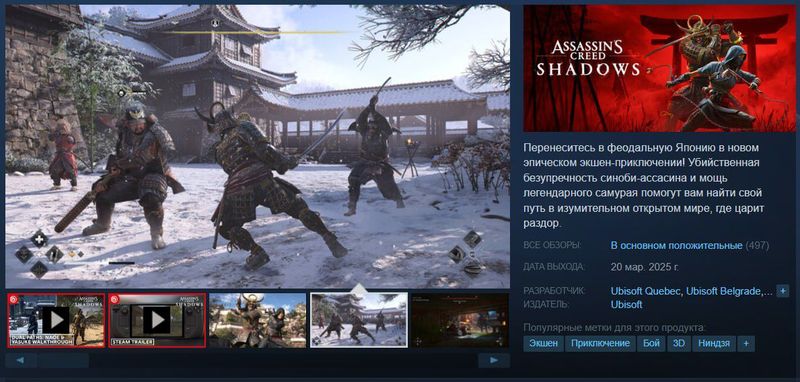 Внимание: AC Shadows игрокам ПОНРАВИЛАСЬ — это не шутка, у игры сейчас крепкие 79% положительных отзывов Показать ещё 11expand_more2expand_less