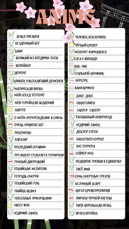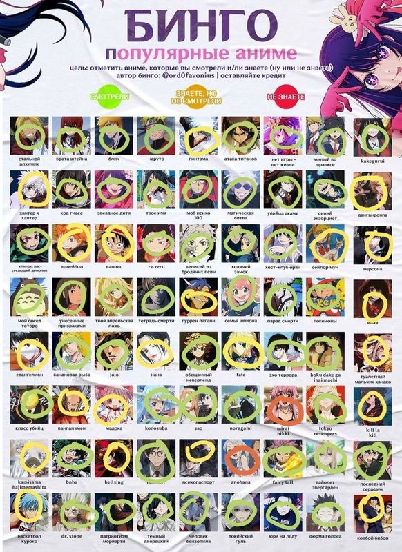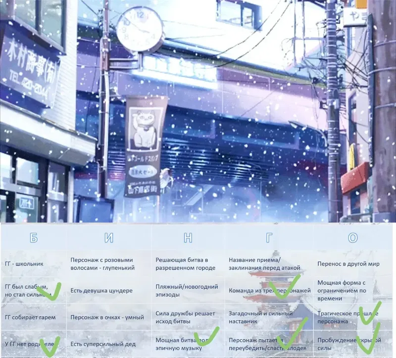 ✅ Бинго попопулярным приемам в аниме