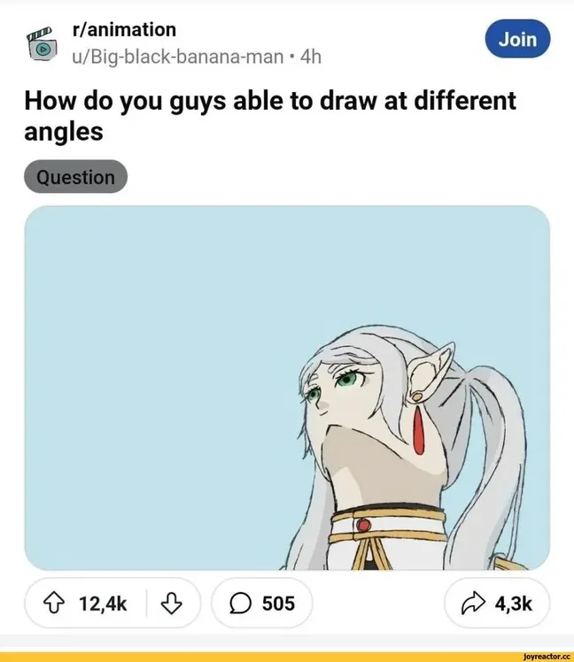 Пользователь одного форума под ником SpaceDev1 опубликовал рисунок, где Фрирен смотрит вверх. Арт буквально взорвал интернет: фанаты начали создавать собственные версии, делиться мемами и обсуждать перспективу персонажа. Некоторые арт-семинары даже разбирают этот ракурс как пример сложной перспективы Показать ещё