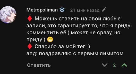 Странно ,чем люди читают посты ,я написал ,что возьму тег #Metropoliman, с чего вы взяли ,что я краду ,я написал в посте ,что метрополимен не против. Почему люди продолжают мне что-то говорить про воровство именно тогда ,когда у меня лимит. Сейчас бы ещё написали ,что я украл тег #TheDnDTeam ,потому что его использовали кто-то раньше меня. В чем смысл что-то говорить про воровство ТЕГА ,тег это просто дополнение поста ,чтобы отметить тему поста или конкретного человека. Про то что я написал ,что беру тег ,я внизу подписал ,что это рофл ,но т.к Метрополимен не против ,я буду его вставлять. Почему вы обвиняете человека ,не разобравшись в ситуации. Никогда не понимал таких людей.