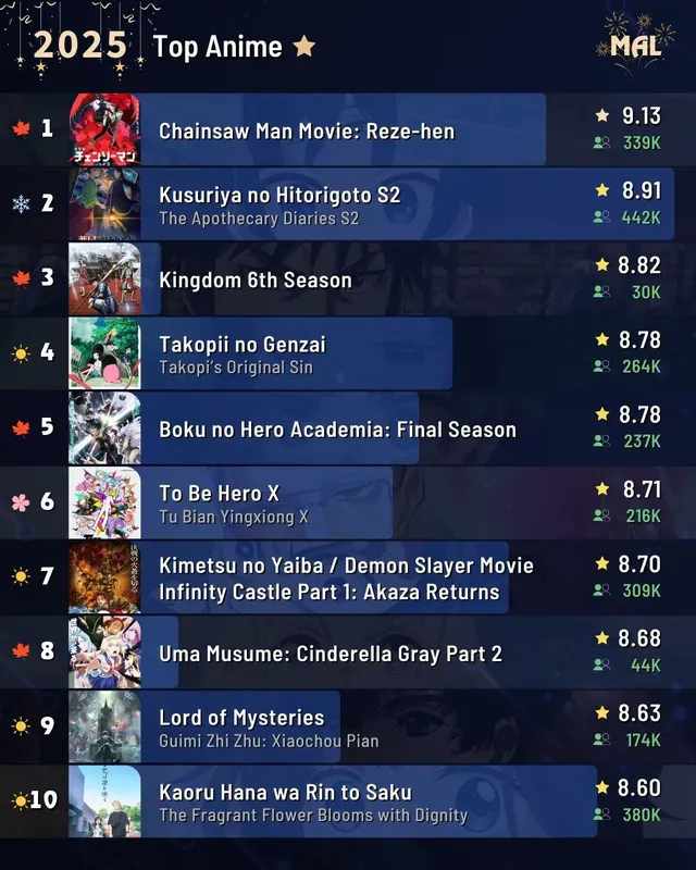 Открыть в Аниксарт 🤠Топ ЛУЧШИХ аниме за 2025 года по версии MAL