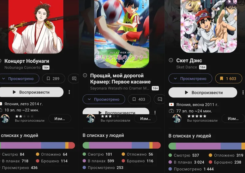 Как вычисление количество "просмотрено". Единственное условие: не малосерийка/маломинутка, можно фильм. У меня слева сериал, посередине фильм, справа многосерийка (скет дэнс кстати советую).