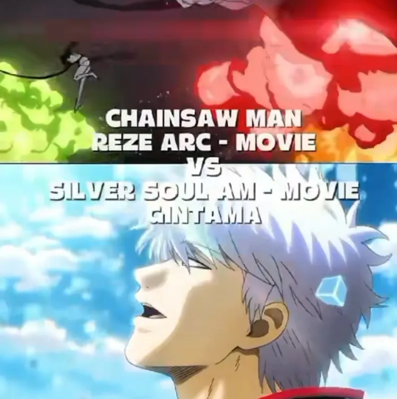 Единственная связь между этими двумя фильмами – гинтама финал долгое время был самым высокооценённым аниме-фильмом, а недавно человек-бензопила его обошёл. Думаю мне не надо повторять, что рейтинги≠реальность.