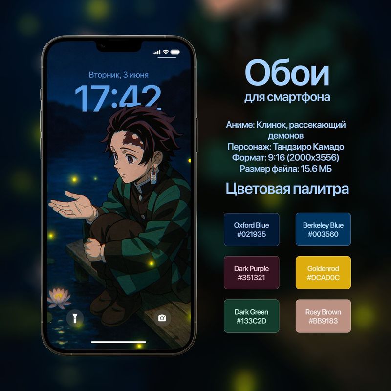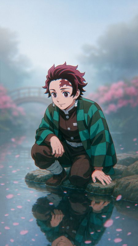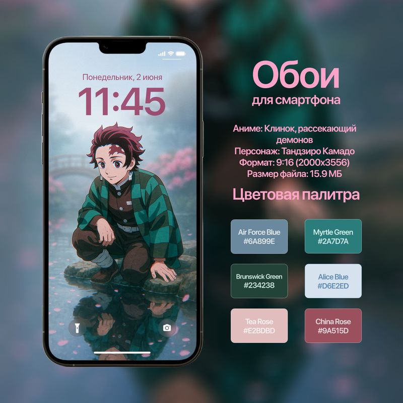 Обои для смартфона с персонажем Тандзиро Камадо (Клинок, рассекающий демонов)