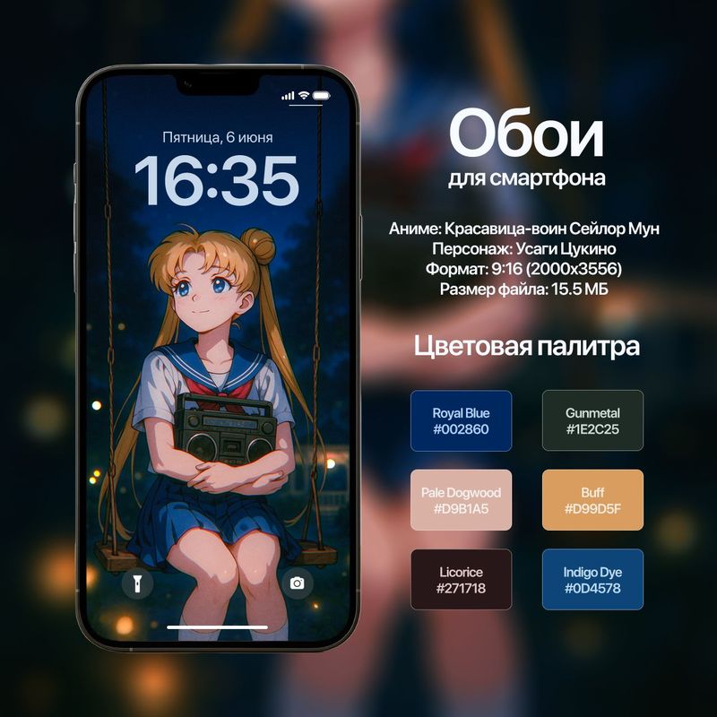 Обои для смартфона с персонажем Усаги Цукино (Красавица-воин Сейлор Мун)