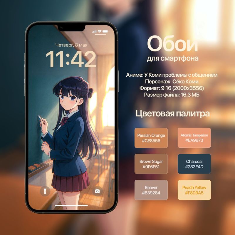 Обои для смартфона с персонажем Сёко Коми (У Коми проблемы с общением)