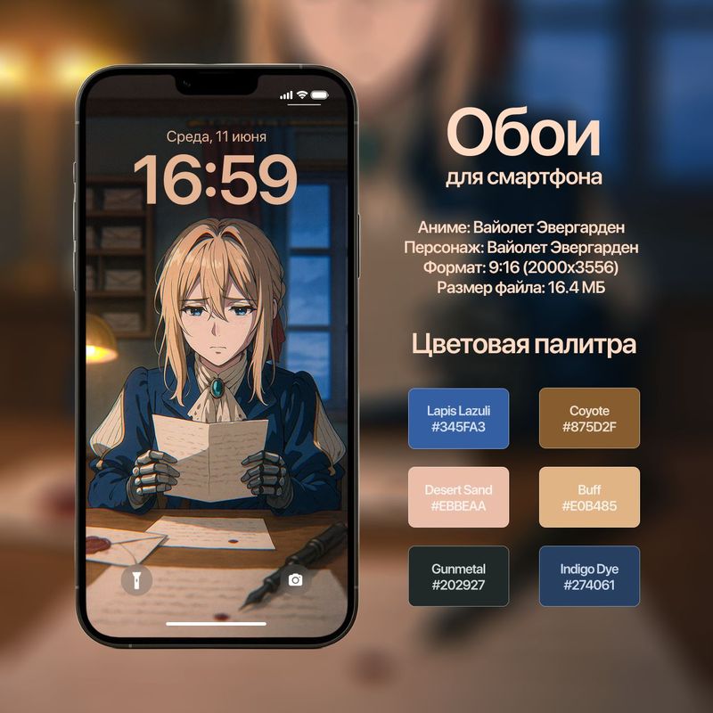 Обои для смартфона с персонажем Вайолет Эвергарден (из одноимённого аниме)