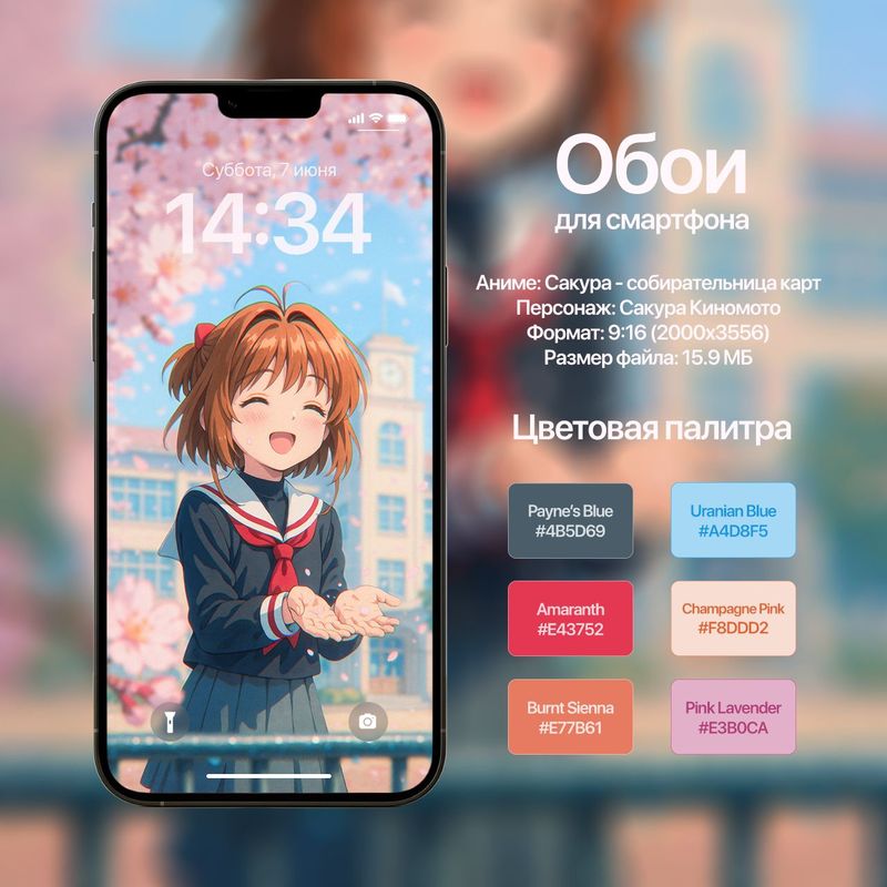 Обои для смартфона с персонажем Сакура Киномото (Сакура — собирательница карт)