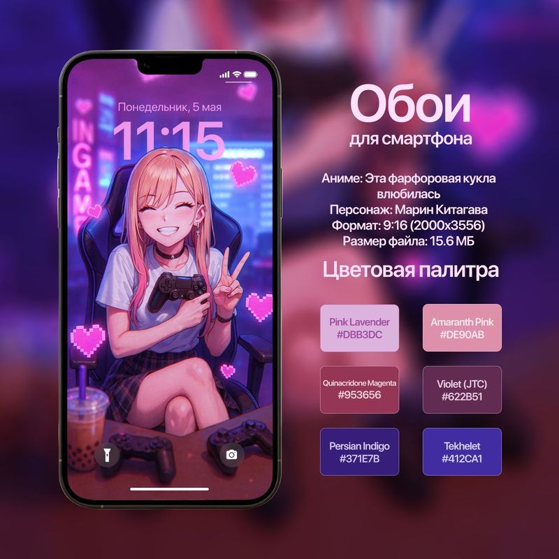 Обои для смартфона с персонажем Марин Китагава (Эта фарфоровая кукла влюбилась)
