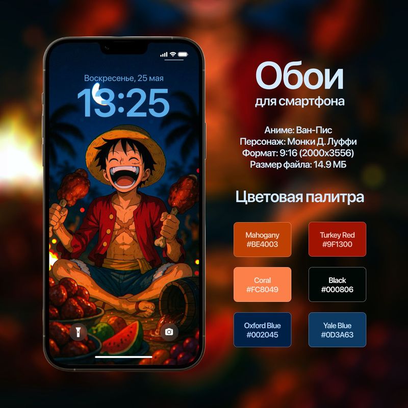 Обои для смартфона с персонажем Монки Д. Луффи (Ван-Пис)