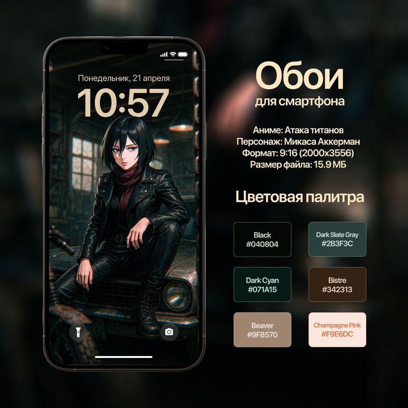 Обои для смартфона с персонажем Микаса Аккерман (Атака Титанов)