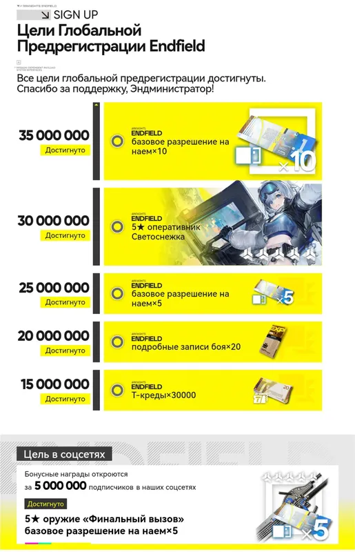 35 миллионов!Достигнута цель глобальной предрегистрации Arknights: Endfield в 35 миллионов участников.Подарки вы можете посмотреть на скриншоте:#ArknightsEndfield #Arknights00expand_more5expand_less