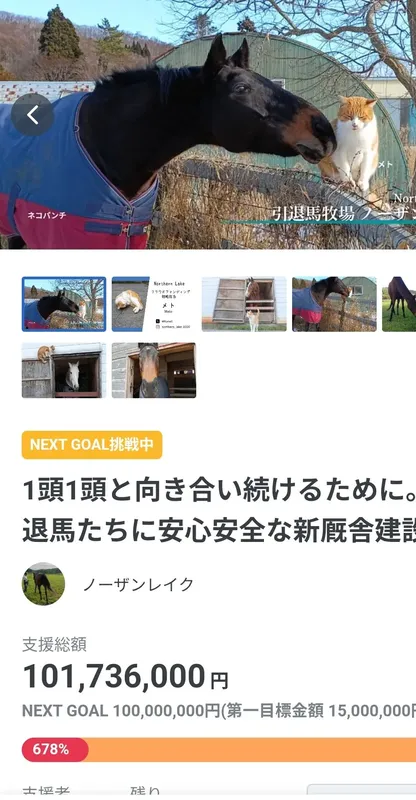 У лошадок будет новый дом благодаря фандому UmaMusume.Ферма, где содержались пожилые лошади находилась не в лучшем состоянии поэтому сегодня владельцы открыли сбор средств для ремонта. За 2 месяца надо было собрать 100.000$ или 15млн йен, каково было их удивление когда эту сумму собрали меньше чем за 3 часа, а сейчас там уже 35млн йен / 230.000$+ и сумма не перестаёт увеличиваться.