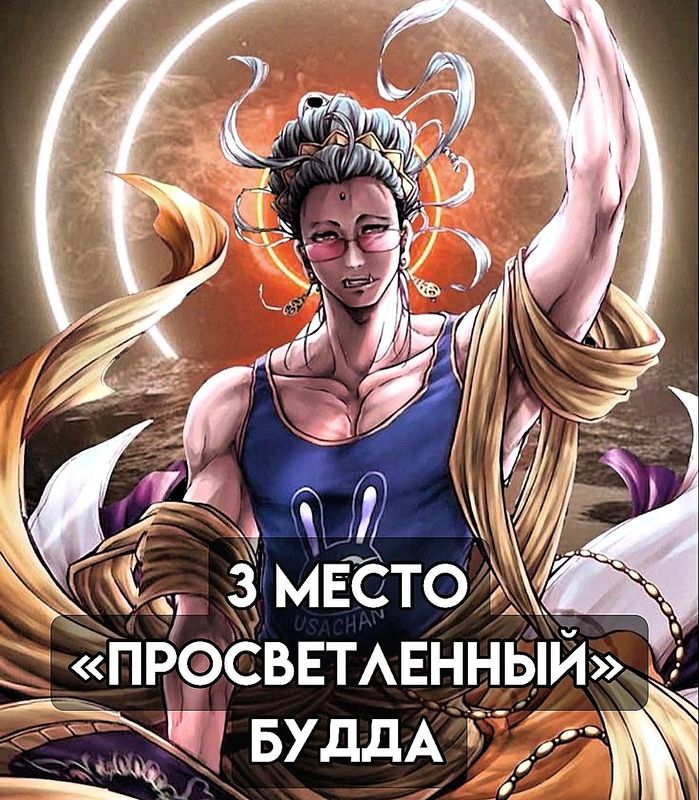 3. ВСТРЕЧАЙТЕ, Самый бунтарский бунтарь сея произведения – БУДДААААААА!3. Человек, достигший просветления и ставший божеством. Его сила — «Восьмое сознание», позволяющее предугадывать действия противника. Уникален тем, что способен победить не силой, а пониманием. Я бы ему отдался честн
