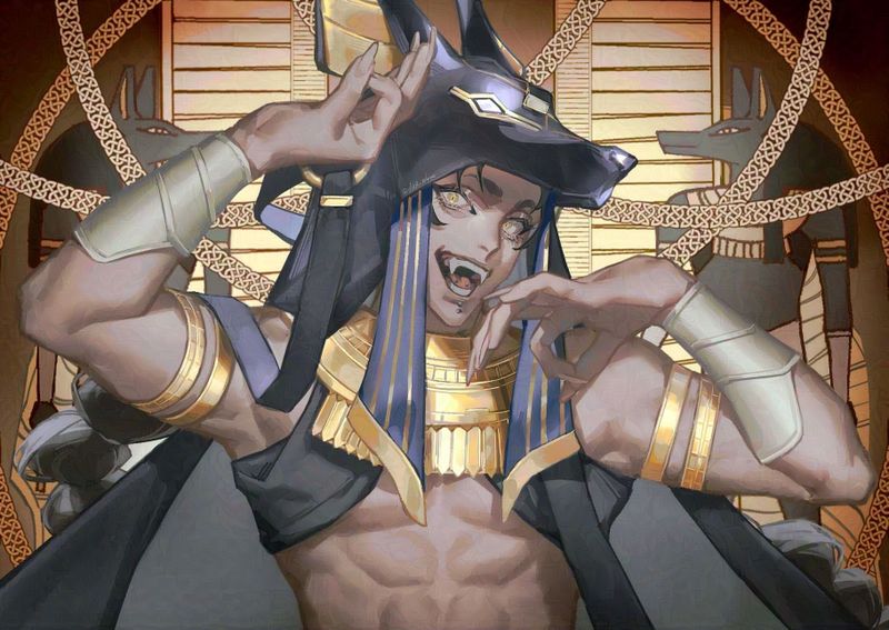 Анубиса знаете? Ну который в сказаниях древнего египта ничо себе проводником мертвых душ был. Так вот, как думаете его изобразят в манге про бои богов? Ответ снизу.