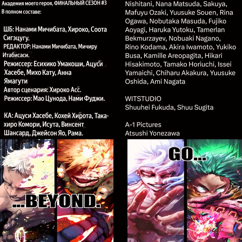 Челюсть выпала когда увидел полный список команды, работающей над финалом геройки.Не думаю, что вы знаете хоть кого-то здесь так что это вам ничего не даст, но просто знайте, Bones выложатся на полную, это чудовищный стафф.