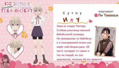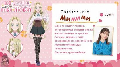 12 января состоится премьера второго сезона аниме «100 девушек которые очень сильно тебя любят». Говорят второй сезон в отличие от первого больше будет завязан на романтических отношениях гг с девушками, но юмор так же будет присутствовать в данном сезоне. Ниже я предоставлю информацию о новых девушках второго сезона в моём личном переводе 🔽