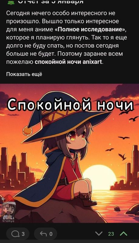 Седня не было постов в связи с багом ленты anixart, без картинок публиковать посты, такое... Скучно и не интересно, лучше вообще нечего не публиковать. Так что как то так. Спокойной ночи anixart.