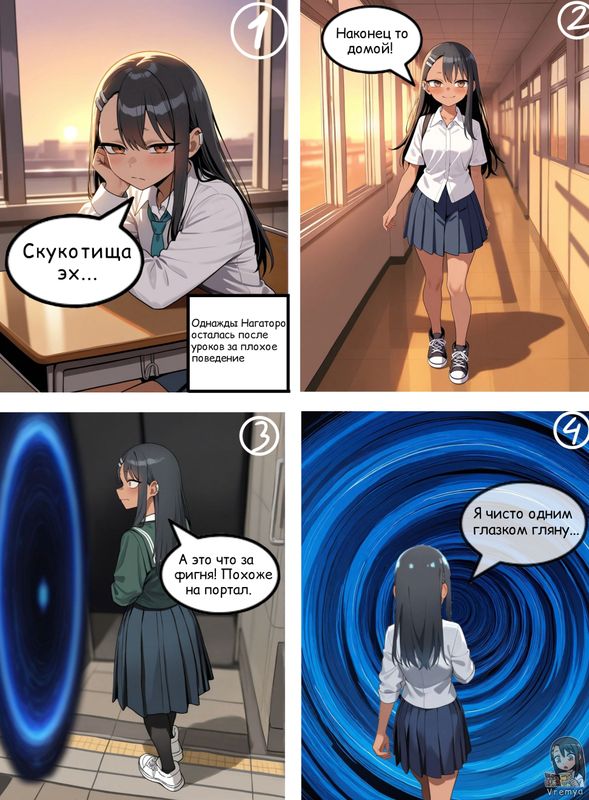 Мы с Sofia👈 и STYT👈 решили сделать колабу с нашими маскотами каналов, и погрузили их в незабываемое приключении в чиби мире в формате комикса. Истории про их маскотов можно посмотреть на каналах колобораторов.*Простите за третий фрейм, его генерил не я, а Sofia👈 и поэтому на Нагаторо другая одежда.