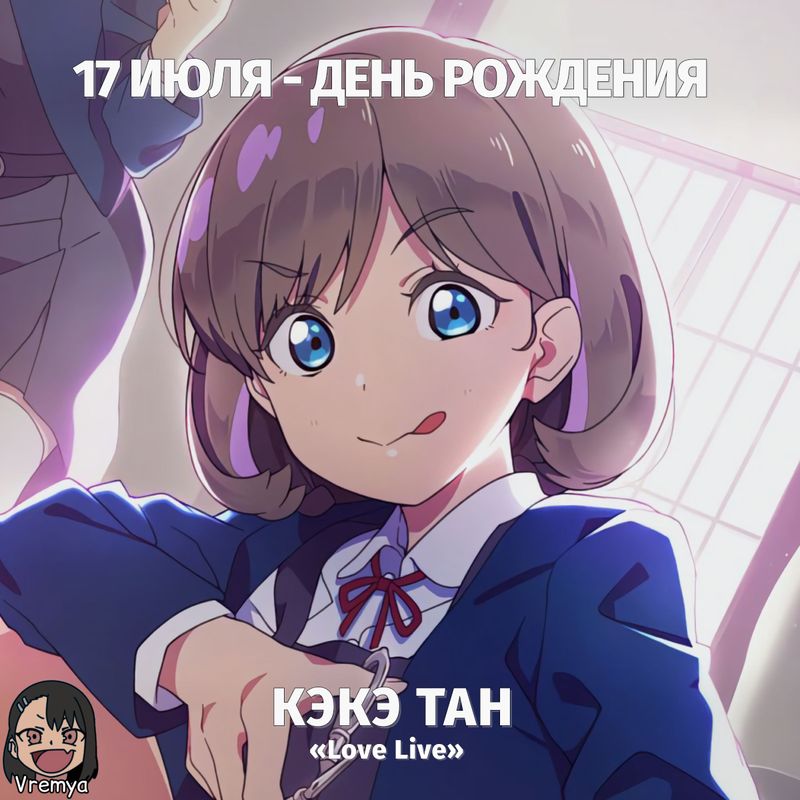 🎂 День Рождения17 ИюляПерсонаж: Кэкэ ТанАниме: «Love Live»#ДР #ДеньРождения #17Июля #Nagatoro_news #Vremya40expand_more13expand_less