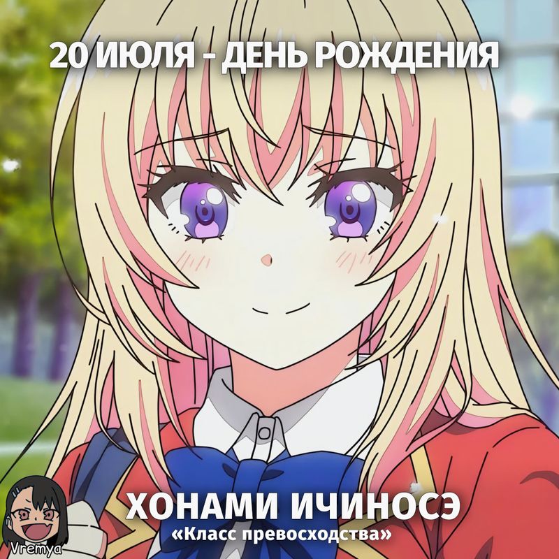 🎂 День Рождения20 ИюляПерсонаж: Хонами ИчиносэАниме: «Класс превосходства»#ДР #ДеньРождения #20Июля #ДоброПожаловатьВКлассПревосходства #КоассПревосходства #Nagatoro_news #Vremya40expand_more14expand_less