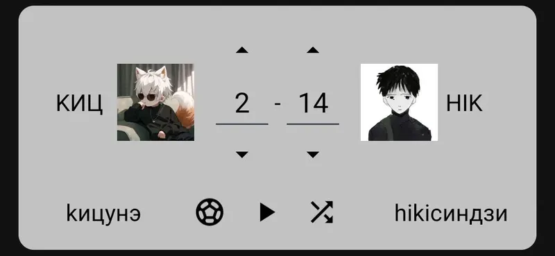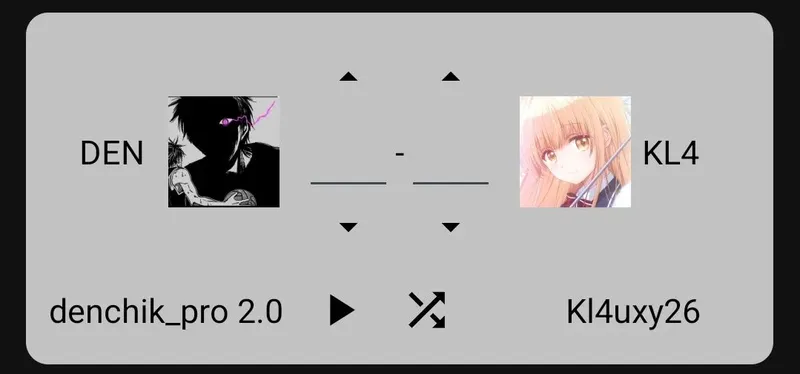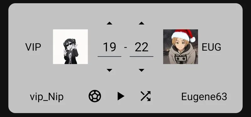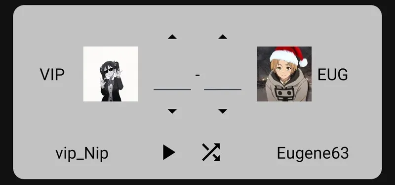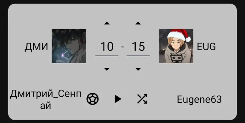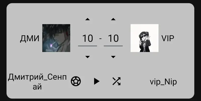 13-й матч: - Дмитрий_Сенпай VS vip_Nip (10 — 10)объяснение: около 14 человек проголосовало за ничью, и примерно равное кол-во отдали голос за определённую личность. Я посчитал честным зафиксировать ничью со счётом 10:10.